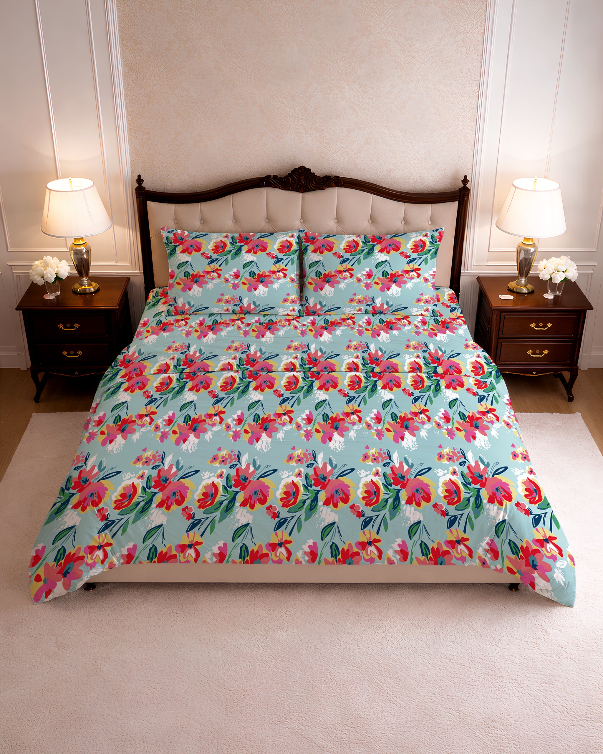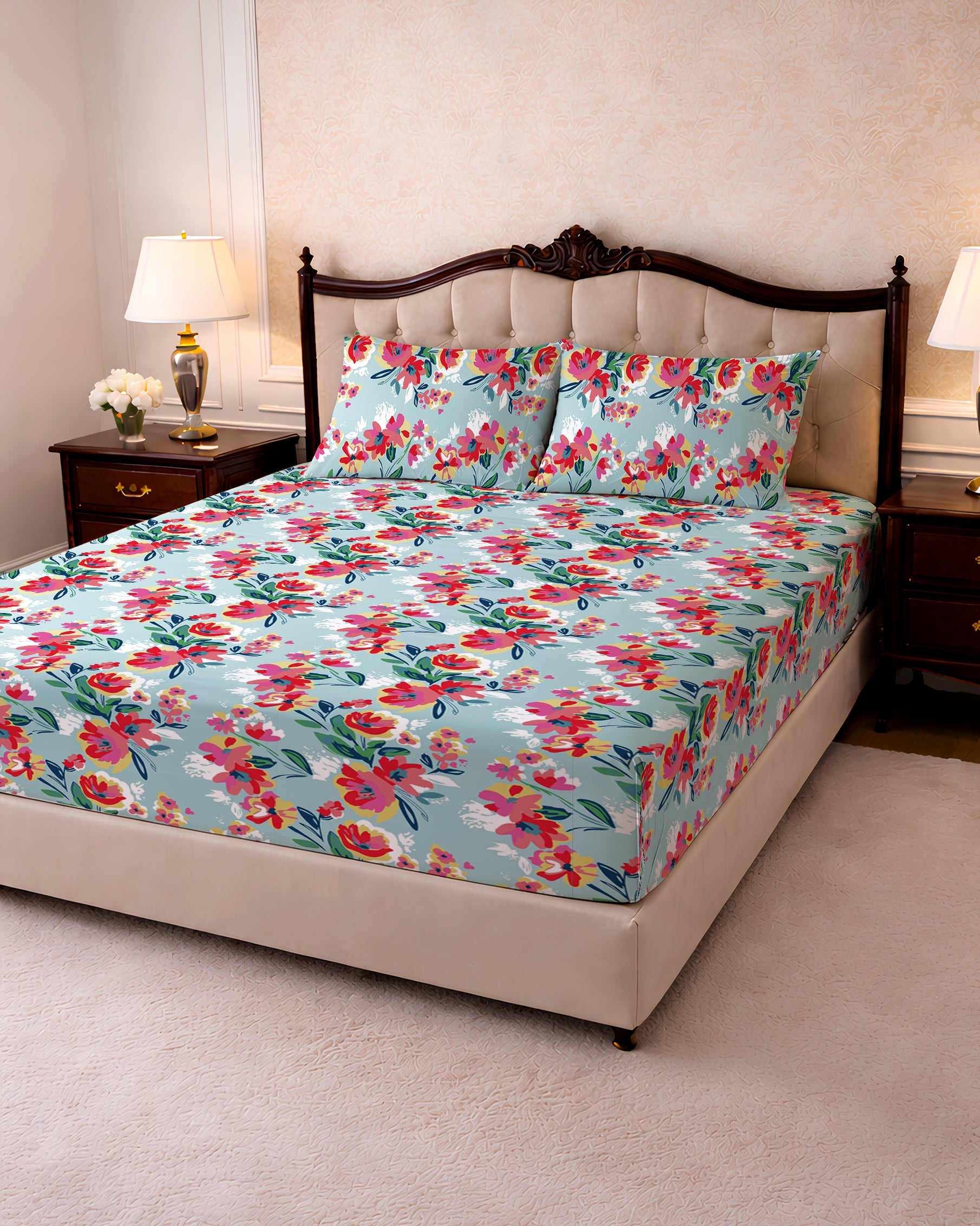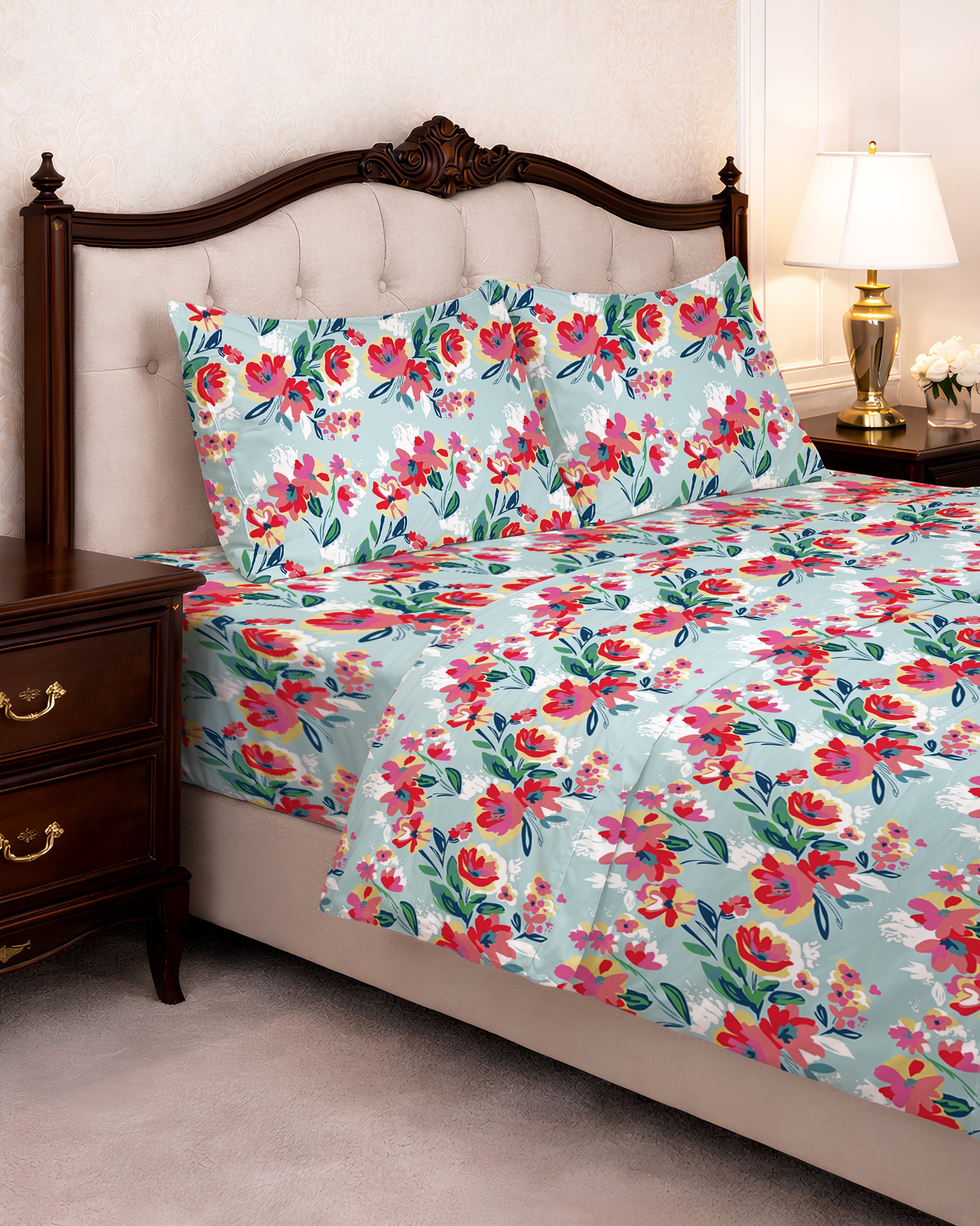 144 TC PRINTED FLORAL FLAT SET