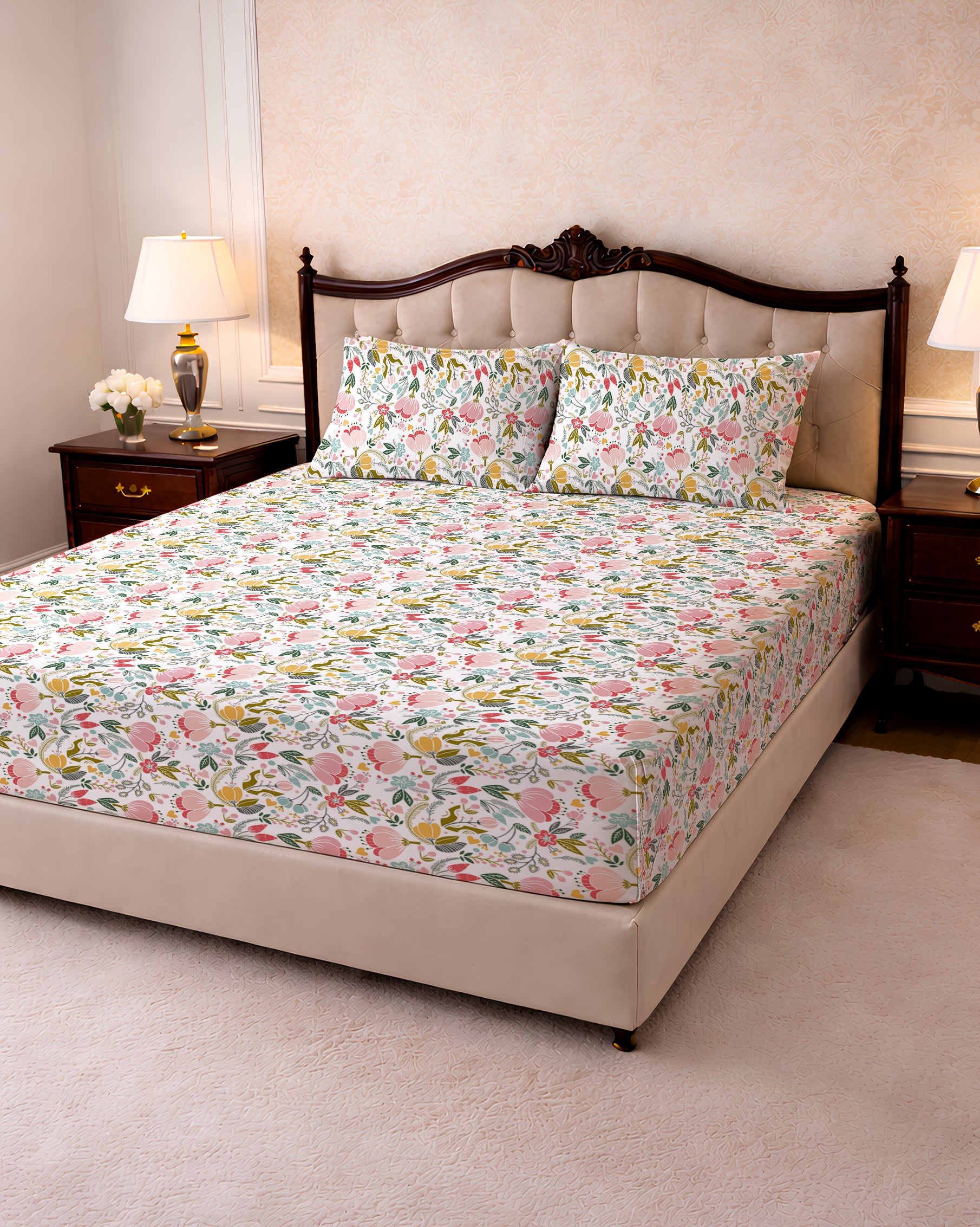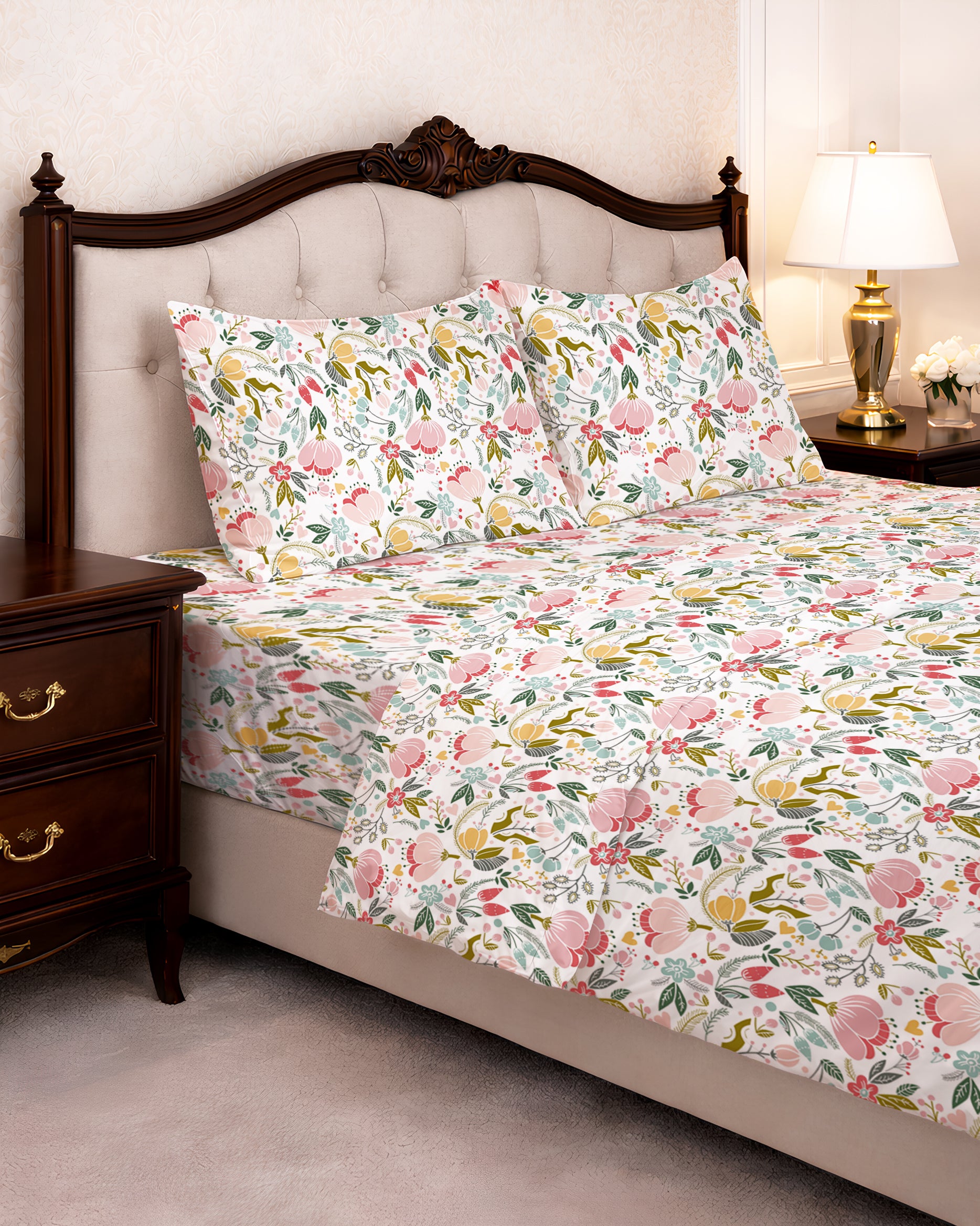 144 TC PRINTED LEAVES FLAT SET